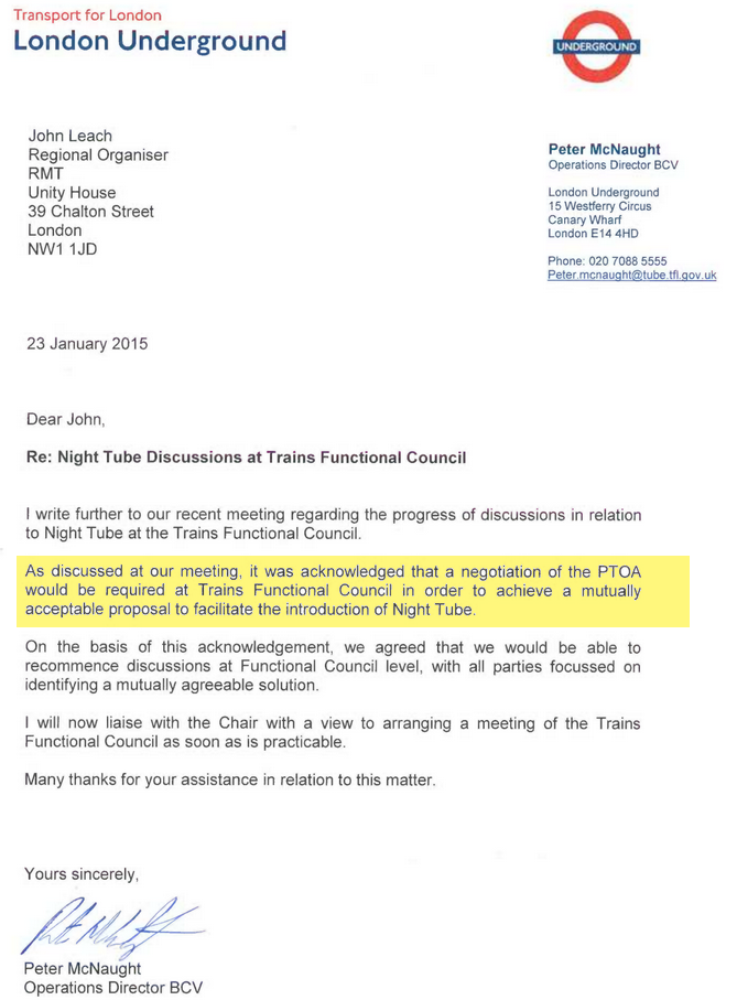 However LUL bosses - some time ago - said the opposite, writing to the RMT saying they wish to enter into negotiations on frameworks; and these negotiations are taking place right now.